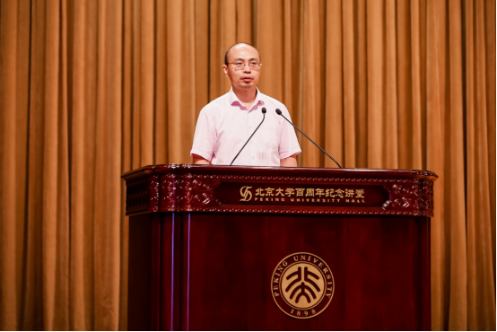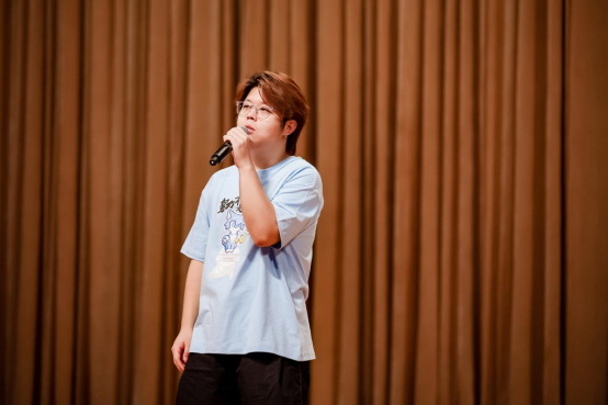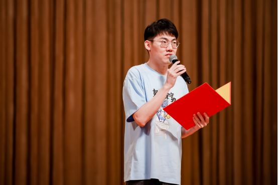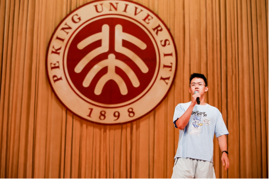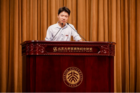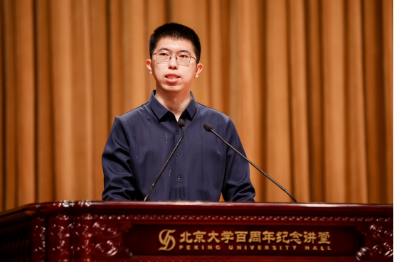 梅文聪同学作为研究生新生代表则分享了自己在科研道路上的心路历程与成长经历。他表示在北大物理学院的学习生活中,物理学教会了他图难于易的道理,也塑造了自己的性格,学习过程中虽有困难但亦有成功的喜悦。他鼓励新生们要保持对科研的热情与好奇心,把握当下,努力成长为一个能够引领未来的人。