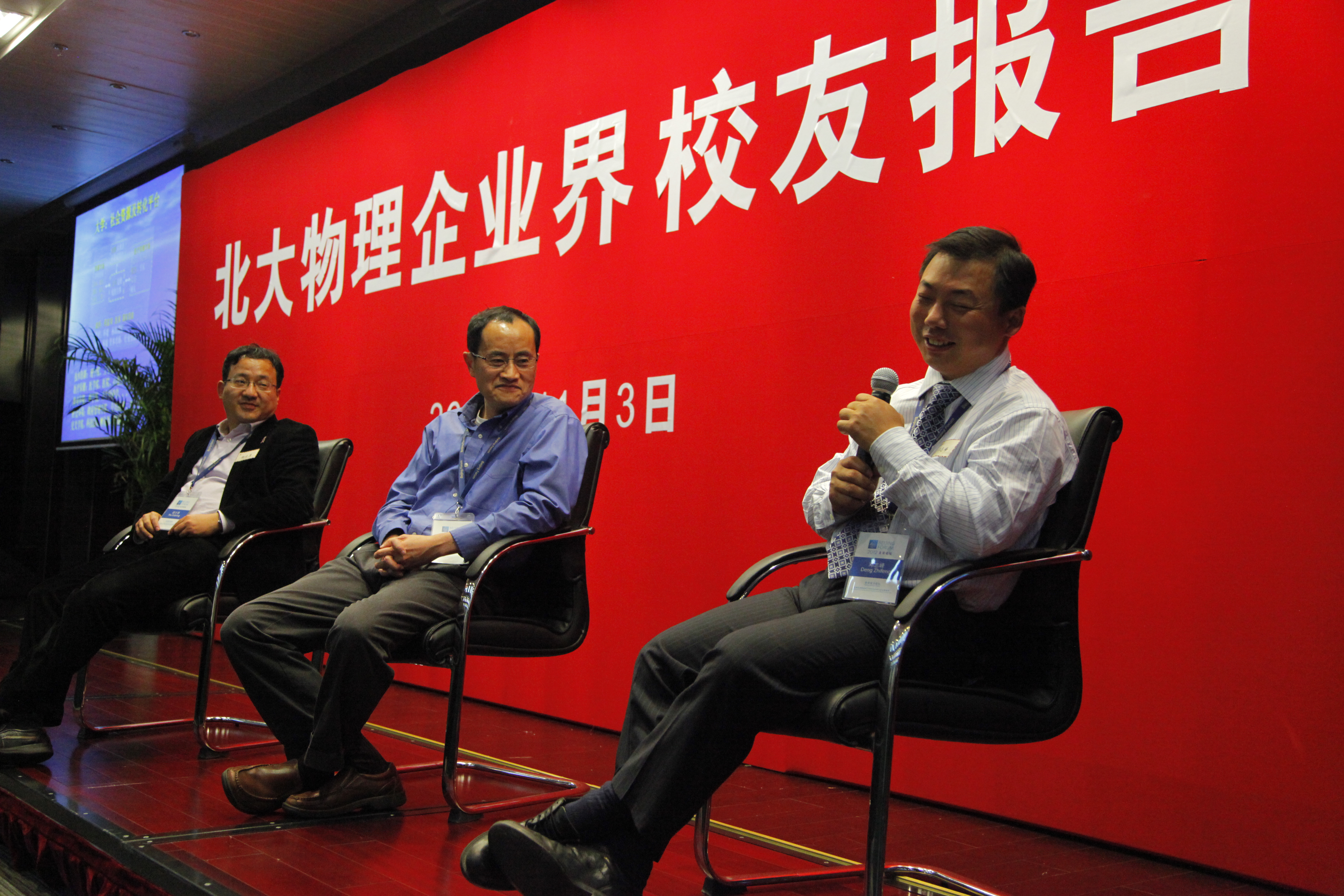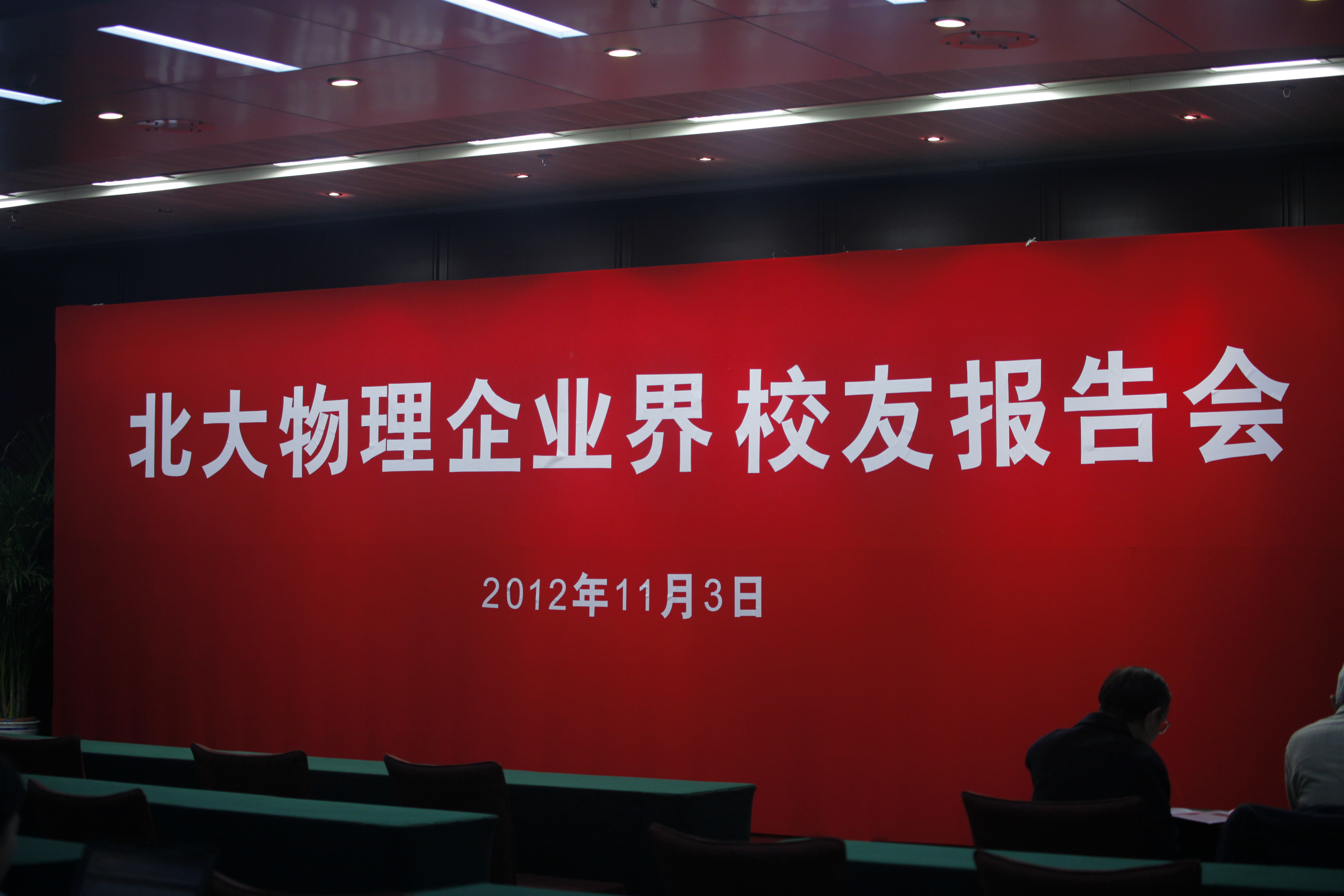 2012年11月3日晚,物理学院企业界校友主题报告会在中关新园科学报告厅成功举行。虽然天气十分恶劣,但来自各年级各行业的30余位校友仍冒雨准时参加了报告会,现场气氛热烈而融洽。