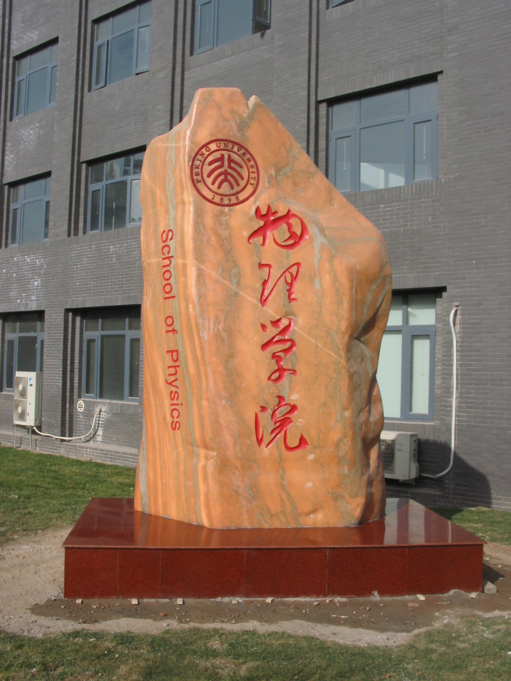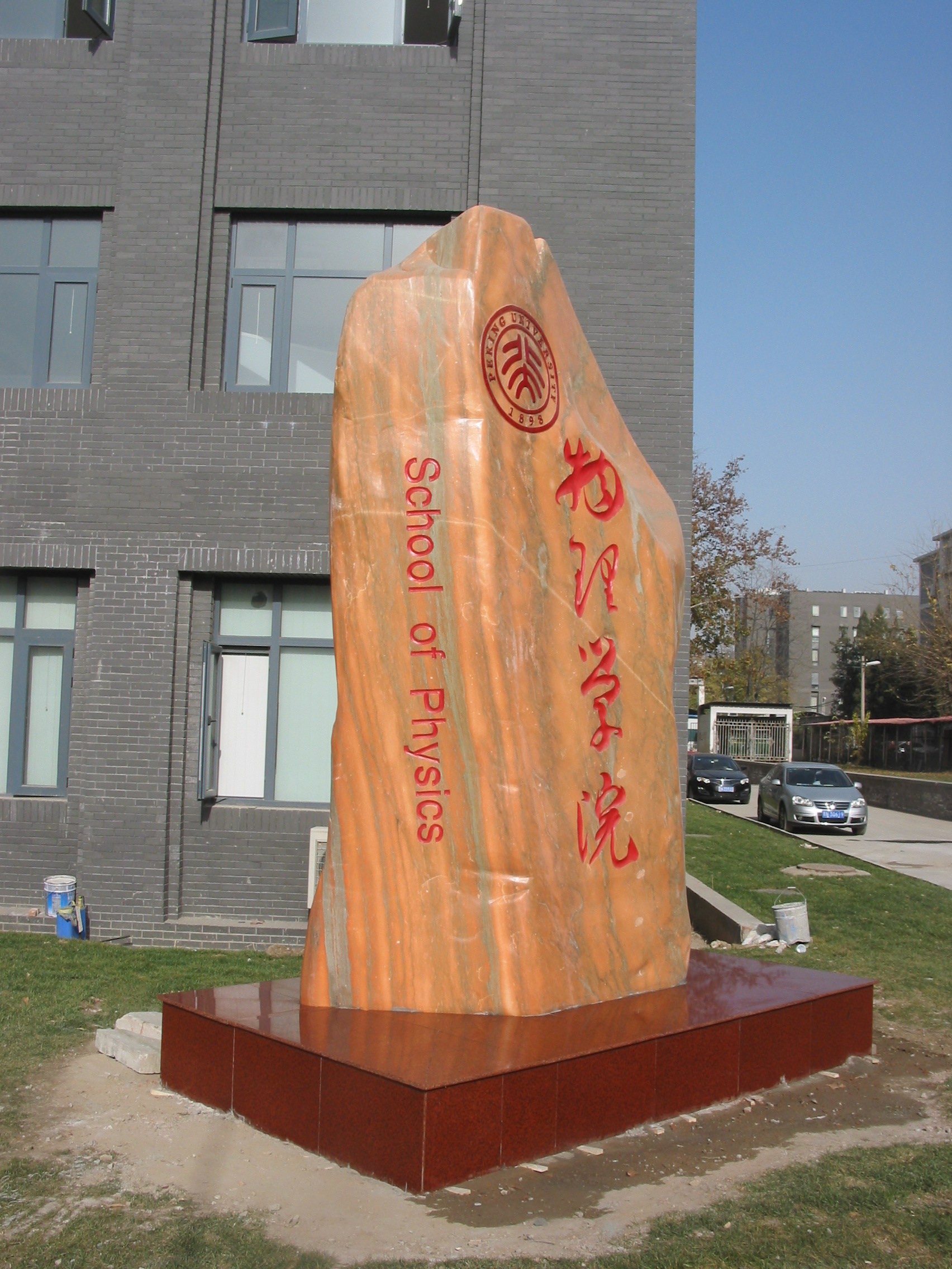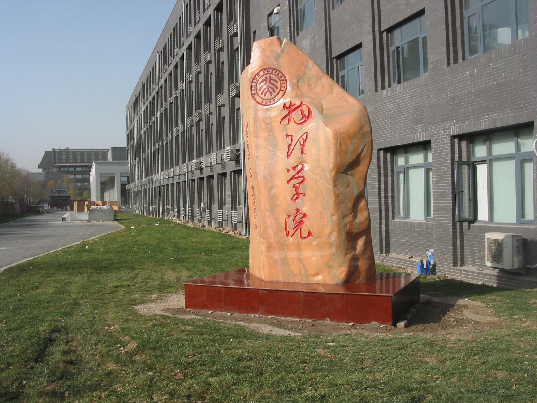 Physics,而上方“峰”顶处可以放校徽…..。这正是我们想要的理想的景观门牌石料。自然,很快得到大家的认可,并立即向物理学院领导进行了汇报,得到了院里的支持。