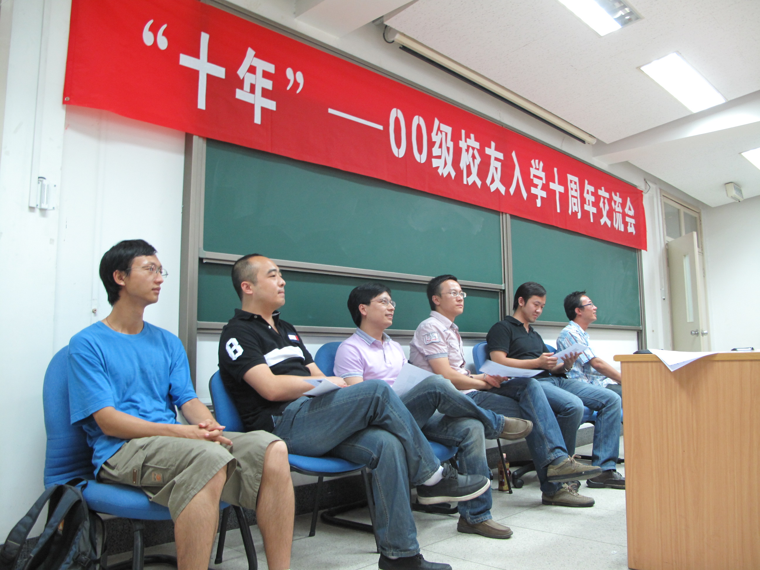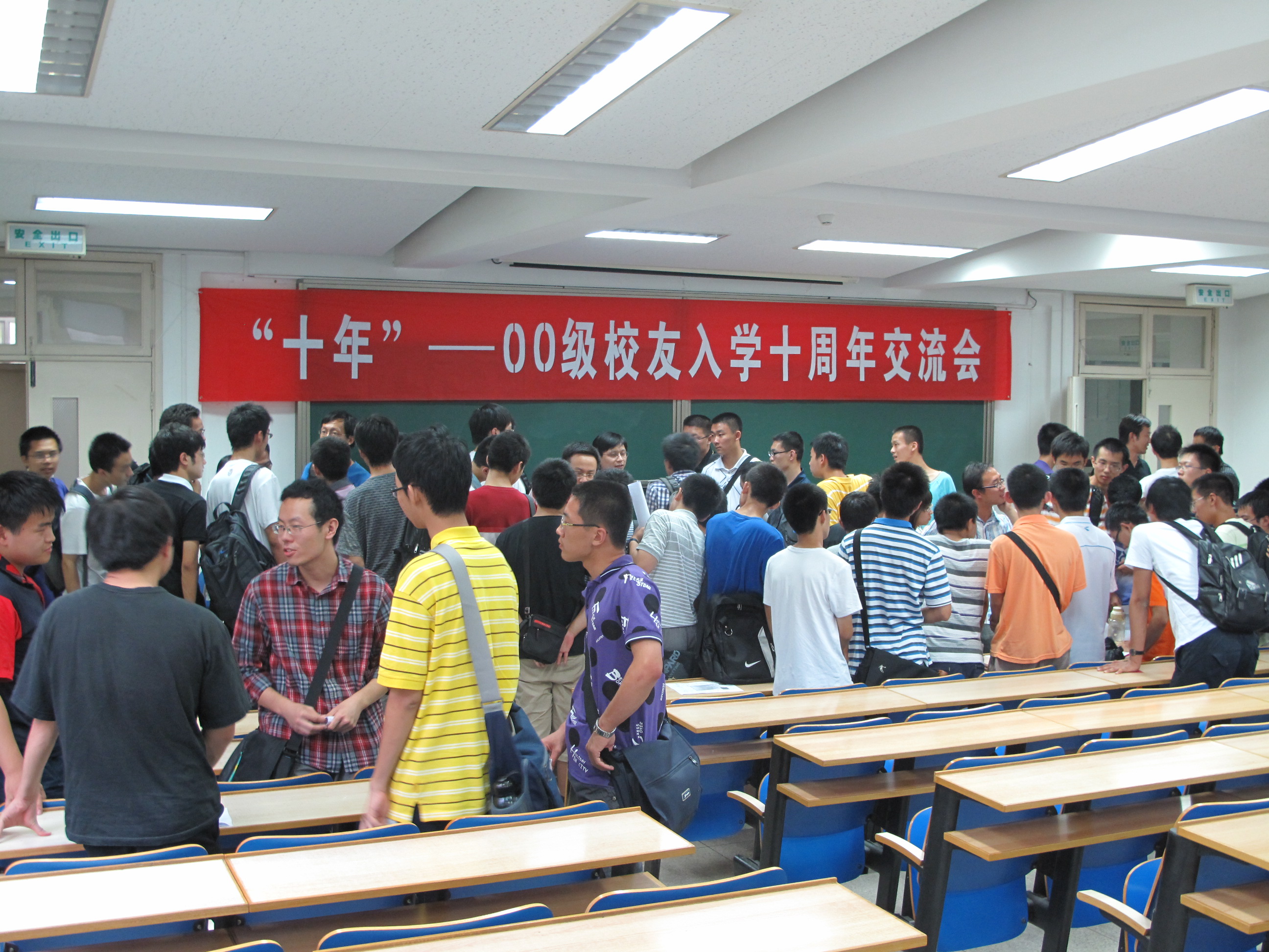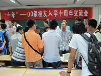 2010年9月4日,“十年”——00级校友入学十周年返校活动暨10级新老生交流会在物理楼中212举行。在陈宇校友的热心组织下,11位校友参加了本次交流会,在思想的交汇与碰撞中为新生上了有关校园生活和人生规划的重要一课。整场交流会气氛热烈,座无虚席。