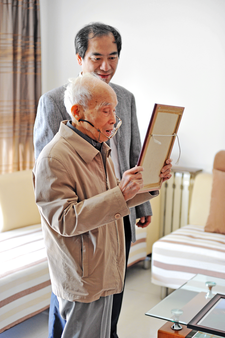 物理学院和基金会为陈院士送去了周其凤校长签名的贺信,王恩哥院长赠送的“万里长城”的画卷以及写有“寿”和“松柏同春”字样的字幅,和寓意长寿的榕树盆景,恭祝陈院士健康快乐,福寿连绵。