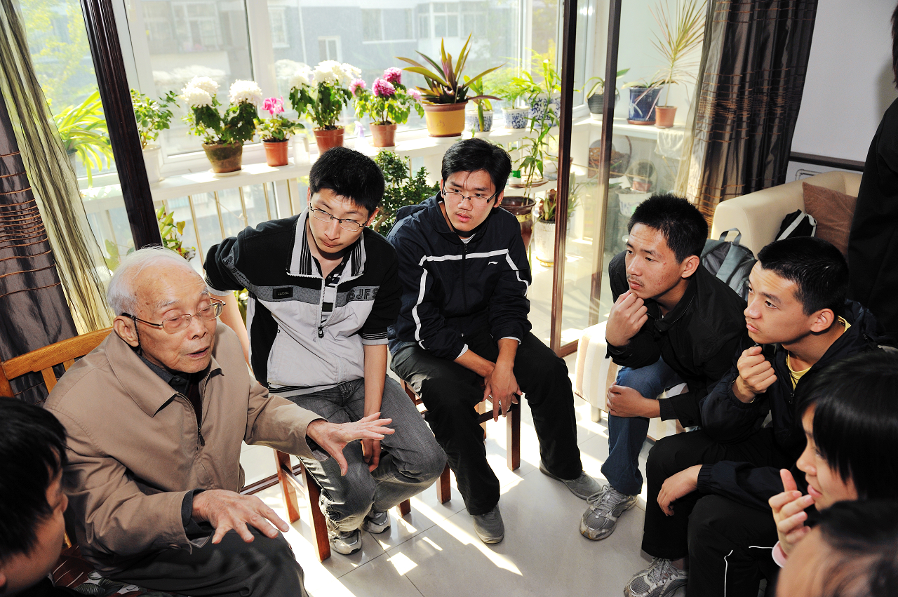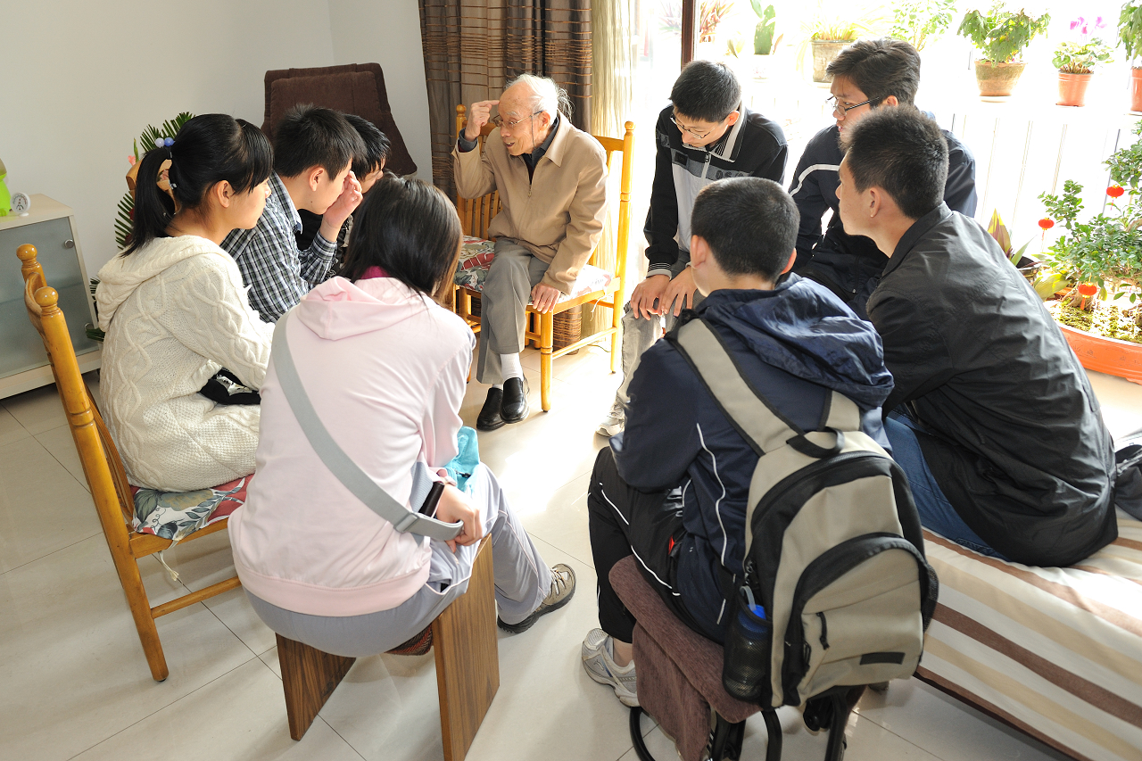之后,各位师生与陈院士及夫人常菊芳女士共用午餐。陈先生兴致很高,和同学们畅谈许久,使同学们深受启发。