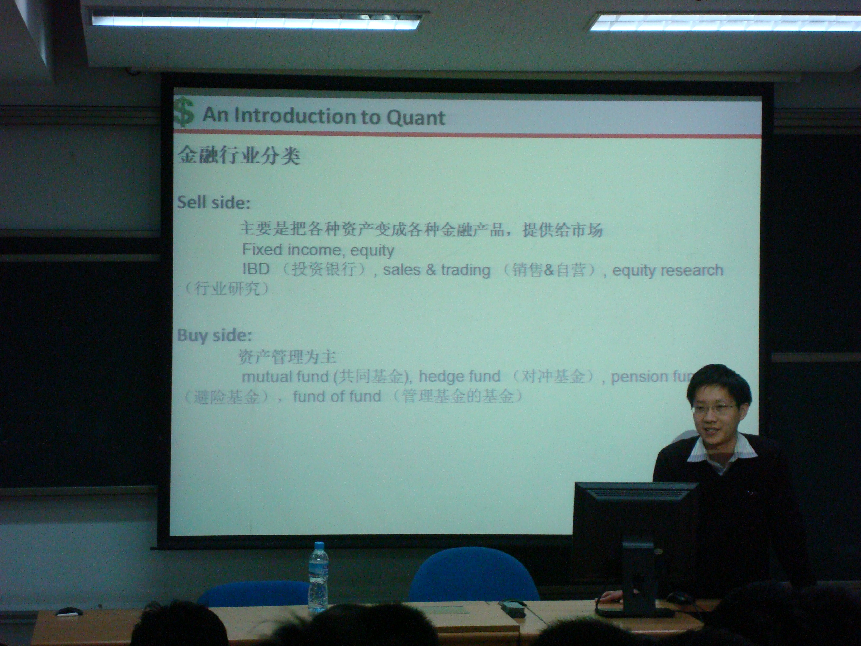 首先,赵志俊校友介绍了整个基金行业的分类和每个类型基金的规模、平均收益率等基础指标。他结合担任北京融迈投资有限责任公司董事长的经历,深入探讨了私募基金公司的一般构成、运行方式和每个部门对人的要求。张万成校友重点谈到作为受过严格思维训练的物理学院毕业生,他在从事对冲基金研究型工作中的优势和经验,并鼓励在读同学要打好数理基础。杨红超学长为大家生动讲述了风投工作的特点以及切身体会。最后,三位学长回答了同学们的踊跃提问,并在会后与大家深入交流。