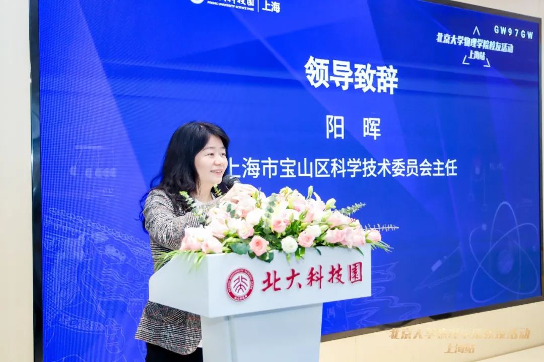 上海市宝山区科委主任阳晖在致辞中表示,宝山区正在全力建设上海科创中心主阵地,促进产业高质量发展。深入推进与北大等知名高校的战略合作,形成了“一核一带两城五园”的科技成果转化格局。同时积极探索“学科+产业”的新型创新模式,依托高校优势学科,加快建设未来产业科技园。当前,以北大物理学院创新源头链接宝山科创热土,共同谱写科创高质量发展新篇章。
