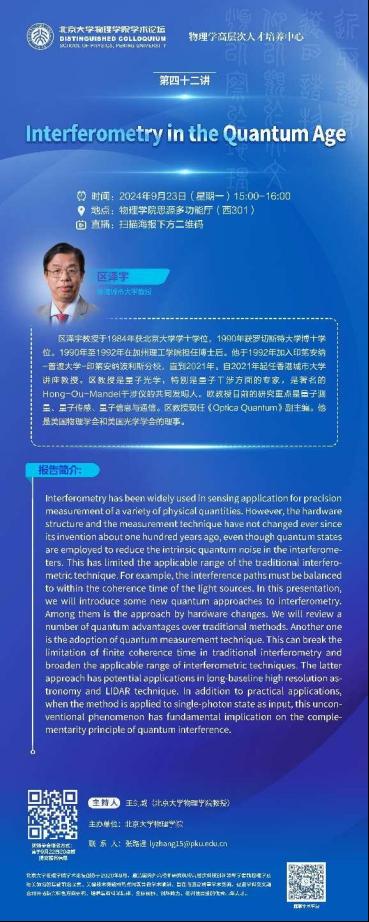 区泽宇教授于1984年获红宝石官方网站hbs备用学士学位,1990年获罗切斯特大学博士学位。1990年至1992年在加州理工学院担任博士后。他于1992年加入印第安纳-普渡大学-印第安纳波利斯分校,直到2021年。自2021年起任香港城市大学讲座教授。区教授是量子光学,特别是量子干涉方面的专家,是著名的Hong-Ou-Mandel干涉仪的共同发明人。欧教授目前的研究重点是量子测量、量子传感、量子信息与通信。区教授现任《Optica Quantum》副主编。他是美国物理学会和美国光学学会的理事。