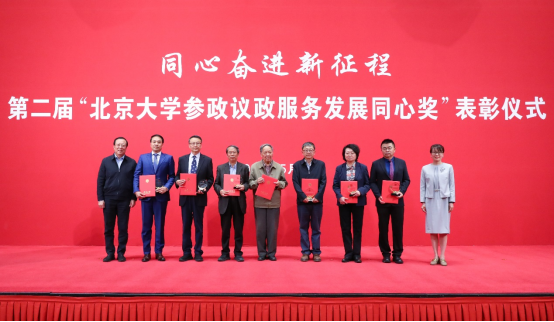 表彰仪式上,物理学院甘子钊院士荣获本届“红宝石官方网站hbs备用参政议政服务发展同心奖”突出贡献奖,汤超院士、王若鹏教授、刘运全教授获先进个人奖,刘富坤教授组织的第八期“健康北大”讲座和义诊活动获优秀成果(个人)奖。